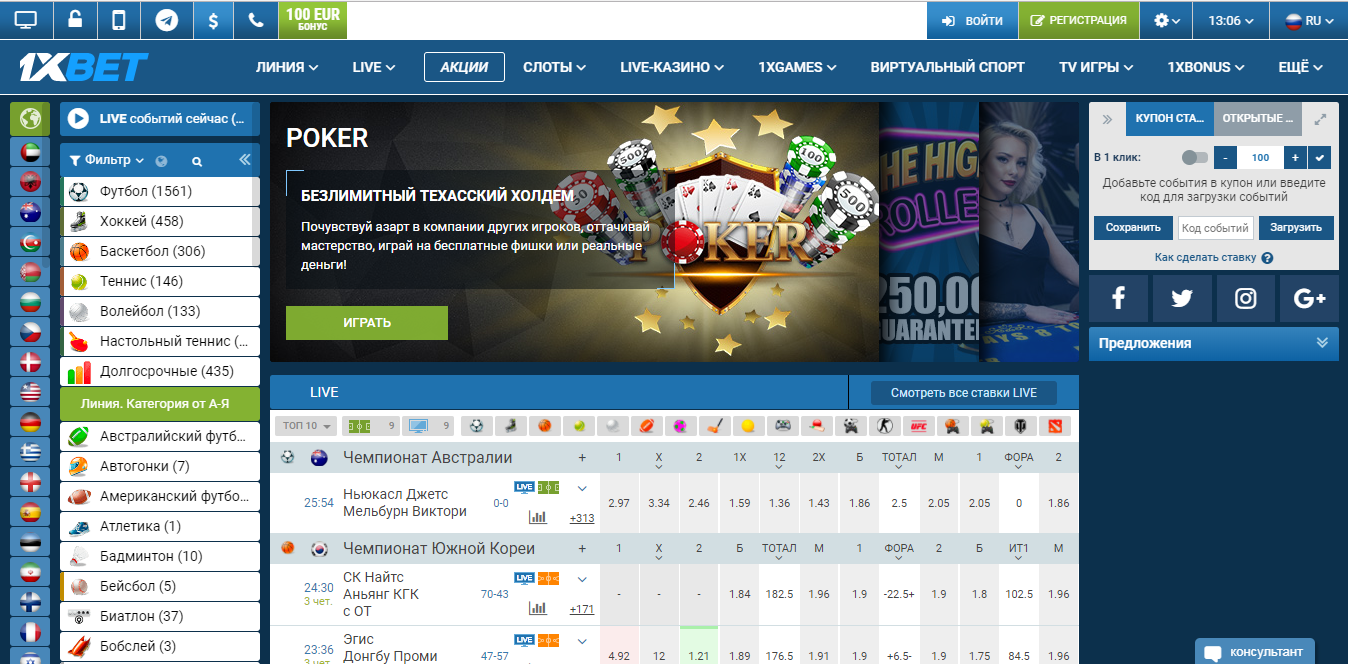 1хБет букмекерская контора - рабочее зеркало 1xBet