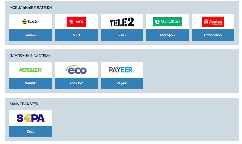 Данная букмекерская контора позволяет пополнить счёт или вывести деньги любым удобным для вас способом, будь то электронный кошелёк, счёт мобильного телефона или банковская карта.